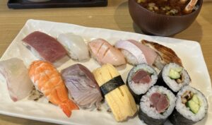 お昼は、鮮度抜群な海鮮を使用したお寿司ランチ付き!